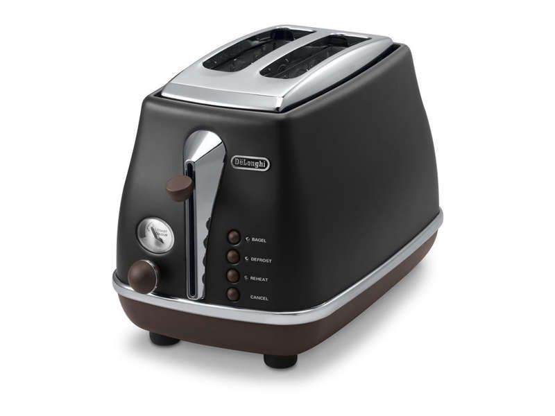Toaster/grille pain Delonghi CTOV 2003.BK- Puissance 900 W- Fonctions réchauffage et décongélation- Tiroir à miettes amovibleLe toaster CTOV 2003 GR de chez Delonghi de la gamme Premium de chez Delonghi est assorti à la cafetière et à la bouilloire, un look vintage modernisé. C’est un grille-pain qui possède 2 fentes pour réaliser deux toasts à la fois.Il dispose d’une position extra haute pour attraper facilement le pain, même les plus petites tranches.Réglage du niveau de brunissage du pain permettant une utilisation personnalisée. Contrôle électronique : fonction réchauffage, décongélation, brunissage un côté et annulation.Puissance 900 W. Grille pain 2 tranches. Thermostat : 6 positions. Taille des fentes : 14 x 3,5 cm. 1 tiroir à miettes amovible.Pieds antidérapants. Dimensions : L18,5 x H20,5 x P32 cm.